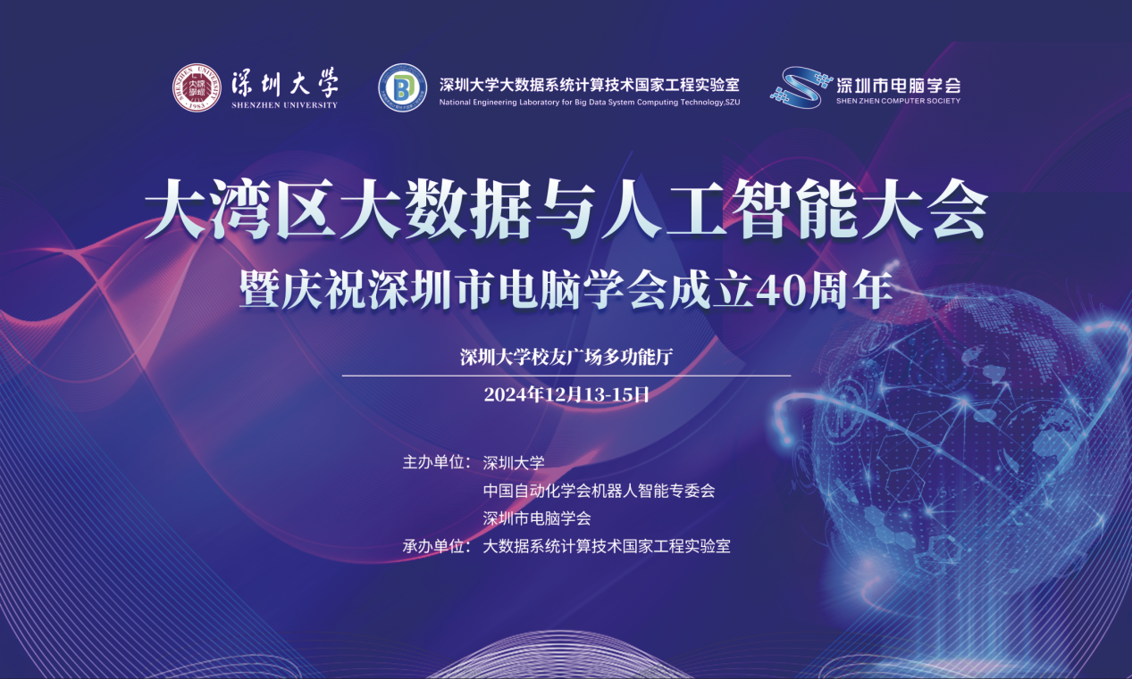 The Greater Bay Area Big Data and Artificial Intelligence Conference and the celebration of the 40th anniversary of the Shenzhen Computer Society were successfully held at Shenzhen University on December 14-15, 2024. The conference was hosted by Shenzhen University, the Robotics and Intelligence Committee of the Chinese Association of Automation, and the Shenzhen Computer Society, and organized by the National Engineering Laboratory for Big Data System Computing Technology of Shenzhen University. Its aim was to build a high-level exchange platform, fully leverage the advantages of the Guangdong-Hong Kong-Macao Greater Bay Area, and promote high-quality industrial development.