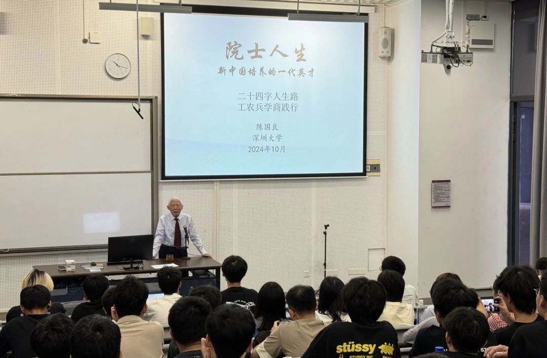 To inspire freshmen's enthusiasm for scientific research and help them quickly clarify their learning goals and directions, on October 18, 2024, Professor Chen Guoliang, Academician of the Chinese Academy of Sciences and Director of the National Engineering Laboratory for Big Data System Computing Technology at Shenzhen University, gave a "Life of an Academician" sharing session to the laboratory's 2024 freshmen in classroom L2-109 of Zhili Building.