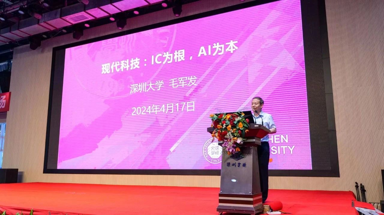 Following this, the unveiling ceremony officially began. In his speech, Deng Xu, Principal of Shenzhen Experimental School, mentioned that the establishment of the Turing Lab is an important measure to deepen cooperation between the two schools and a beneficial exploration for the future development of science and technology education. He hoped that this platform would inspire students' innovative spirit and research potential, and cultivate more outstanding science and technology innovation talents. Leaders from both schools jointly unveiled the Turing Lab and took a group photo. After the unveiling ceremony, Mao Junfa, Academician of the Chinese Academy of Sciences and President of Shenzhen University, delivered a lecture entitled "Modern Technology: IC as the Root, AI as the Foundation" to the teachers and students of Shenzhen Experimental School.