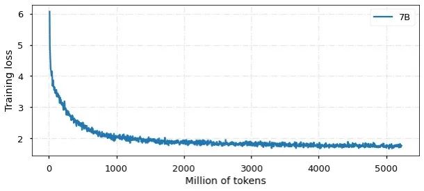 Currently, the model has been trained with 5 billion Chinese and English tokens, and the convergence result is shown in the figure: