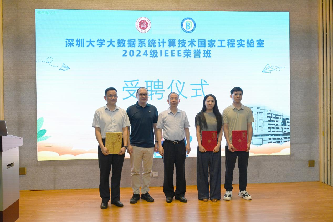 With a clear sky and the deepening autumn colors, the National Engineering Laboratory for Big Data System Computing Technology at Shenzhen University held a themed class meeting for the 2024 cohort of Computer Science and Technology (IEEE Honors Class) on September 4, 2024. This meeting not only attracted the attention of faculty and students within the university but also had the honor of inviting numerous industry elites and academic authorities, including Honors Class Advisor Academician Mao Junfa, Tencent Vice President Wang Juhong, Huawei Cloud Global Ecosystem President Kang Ning, and BGI Group Education Center Vice President Wang Linpeng. Also present were Yuan Lei, Director of the Academic Affairs Department; Ke Xiao, Secretary of the Youth League Committee; Zhu Lingyan, Director of the Admissions Office; Yang Guohong, Secretary of the School of Computer Science and Software; and Liao Jianghai, Deputy Secretary of the School of Computer Science and Software, along with all faculty and staff of the laboratory and all students of the 2024 IEEE Honors Class.