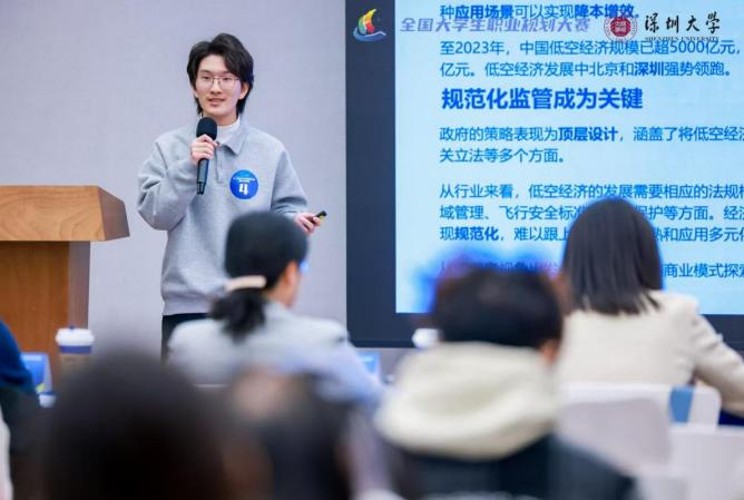 The Shenzhen University final presentation consisted of a 7-minute self-introduction, a 4-minute comprehensive interview, and a 1-minute "offer given out" segment. Under the leadership of the college's Party Committee and with the support of the laboratory, Huang Pintian, a student from the IEEE Honors program, combined his professional knowledge with societal needs through comprehensive guidance from his teachers and thorough preparation. He articulated his views on the future prospects of the low-altitude economy and his aspiration for a position as a UAV planning algorithm engineer. He also developed a series of growth plans based on the IEEE Honors program's distinctive training system of "emphasizing international literacy, fostering research enthusiasm, producing outstanding results, and becoming industry experts," winning unanimous recognition from the judges and becoming the only first-year student to win a gold medal in this competition. He demonstrated excellent spirit and showcased the talent of laboratory students on stage.