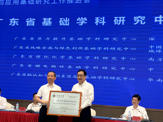 2024年5月31日,广东省首批基础学科研究中心授牌仪式在广州举行。校长毛军发院士领衔的广东省算力提升基础学科研究中心获批授牌。研究中心由深圳大学大数据系统计算技术国家工程实验室牵头组织申报,射频异质异构集成全国重点实验室、计算机与软件学院、电子与信息工程学院、物理与光电工程学院等院系的骨干科研团队参与。