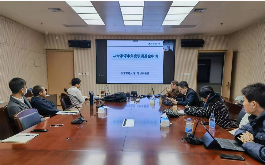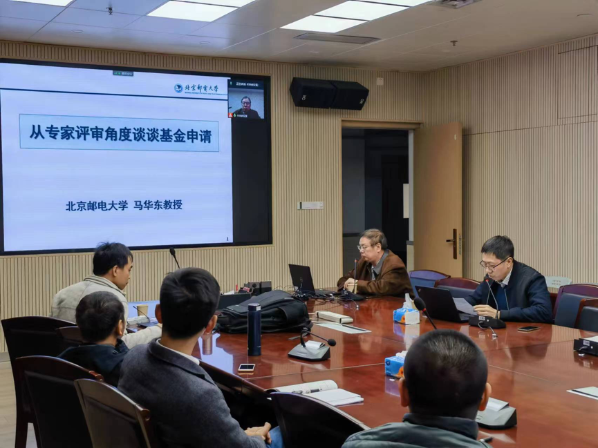 本次会议特邀北京邮电大学计算机学院马华东教授作指导报告,国家工程实验室副主任朱泽轩主持会议,吸引了线上线下共80余位科研工作者交流活动。马华东从专家评审的角度出发,谈基金申请过程中需要注意的要点,内容详细充实,有很强的启发作用,参会人员受益颇深。